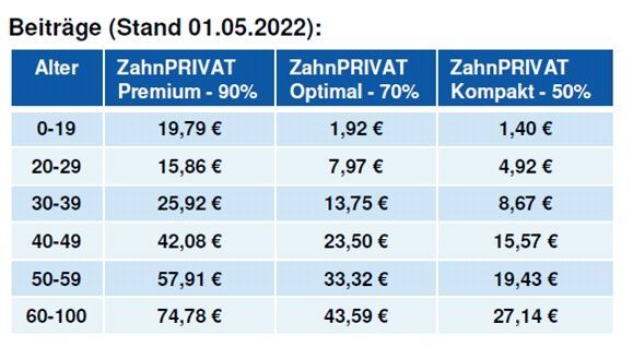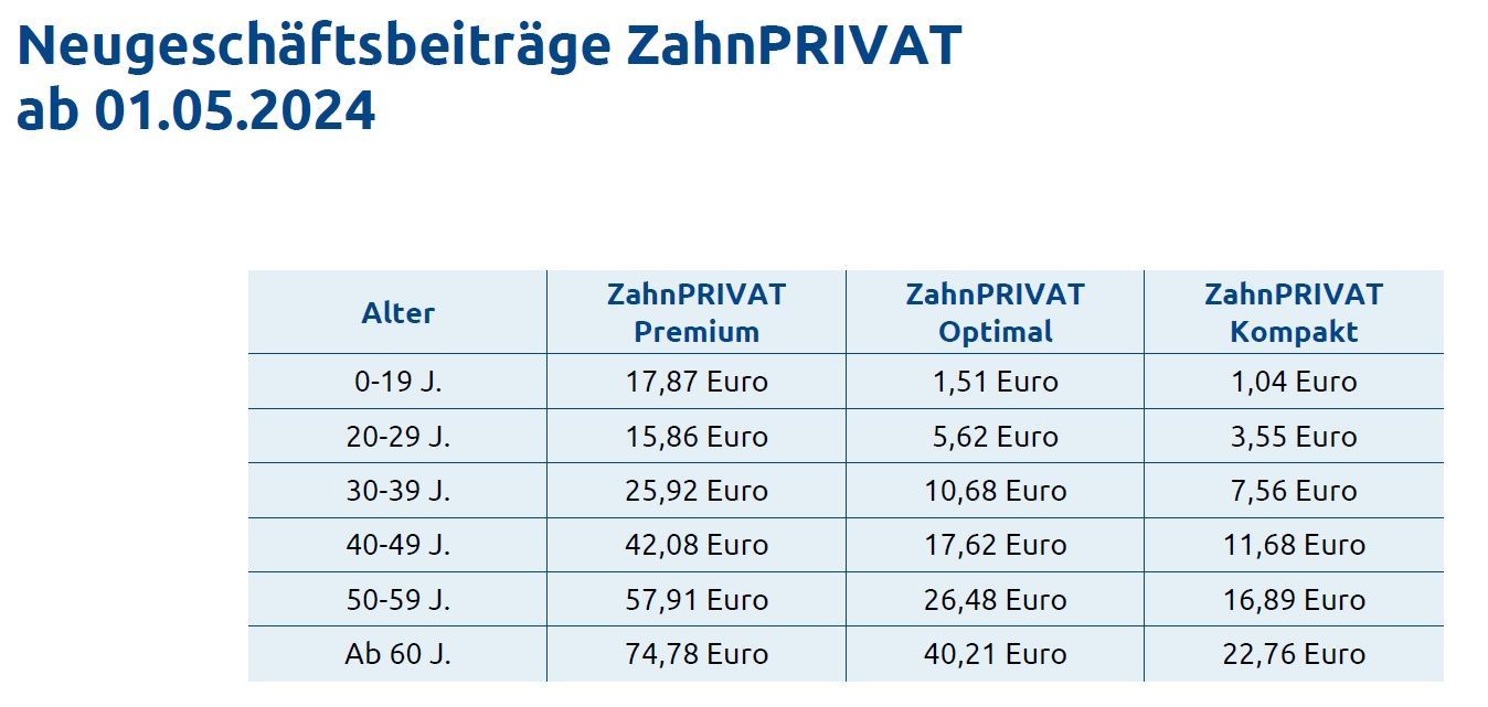 Informationen zu unseren Beitragsänderungen Zusatzversicherung im Mai 2024. Erfreulicherweise gibt es im ZahnPRIVAT als auch im Tarif KH (Krankenhaustagegeld) Senkungen der Beiträge. Die Pflegetagegelder bleiben bei Erwachsenen stabil, für Kinder und Jugendliche gibt es eine Beitragsanpassung - siehe Beiträge im Download.